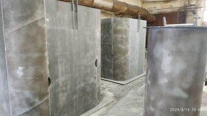 Рязанская 91. Колодцы после пескоструйной обработки готовы к нанесению битумного покрытия.
