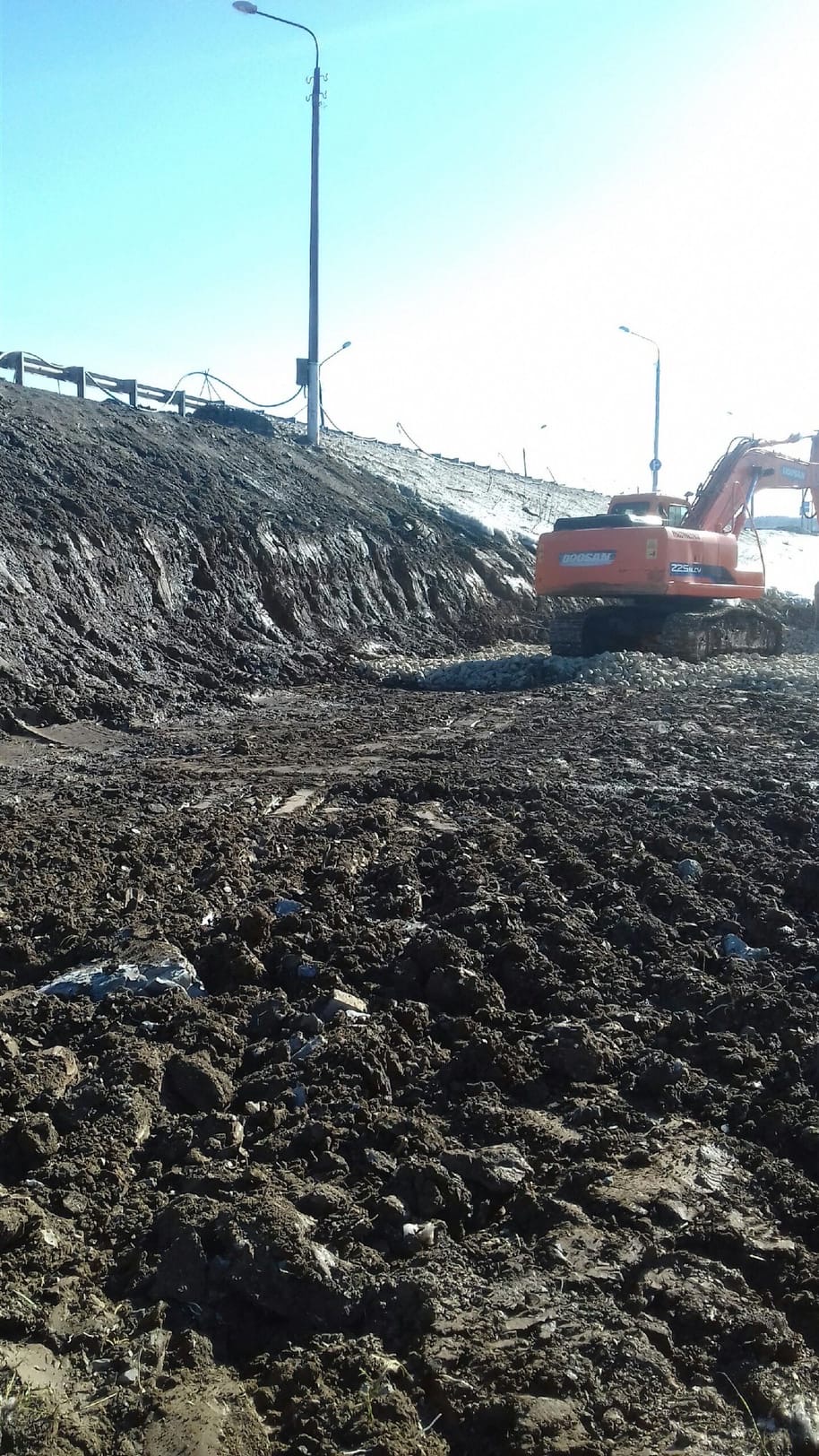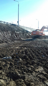 Сергиев Посад. Чусовской мост. Строительство дорожной развязки в Пальниках. Подготовка площадки для устройства шпунтовой подпорной стенки.
