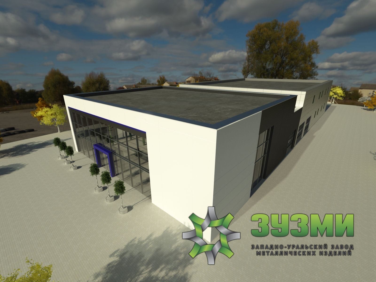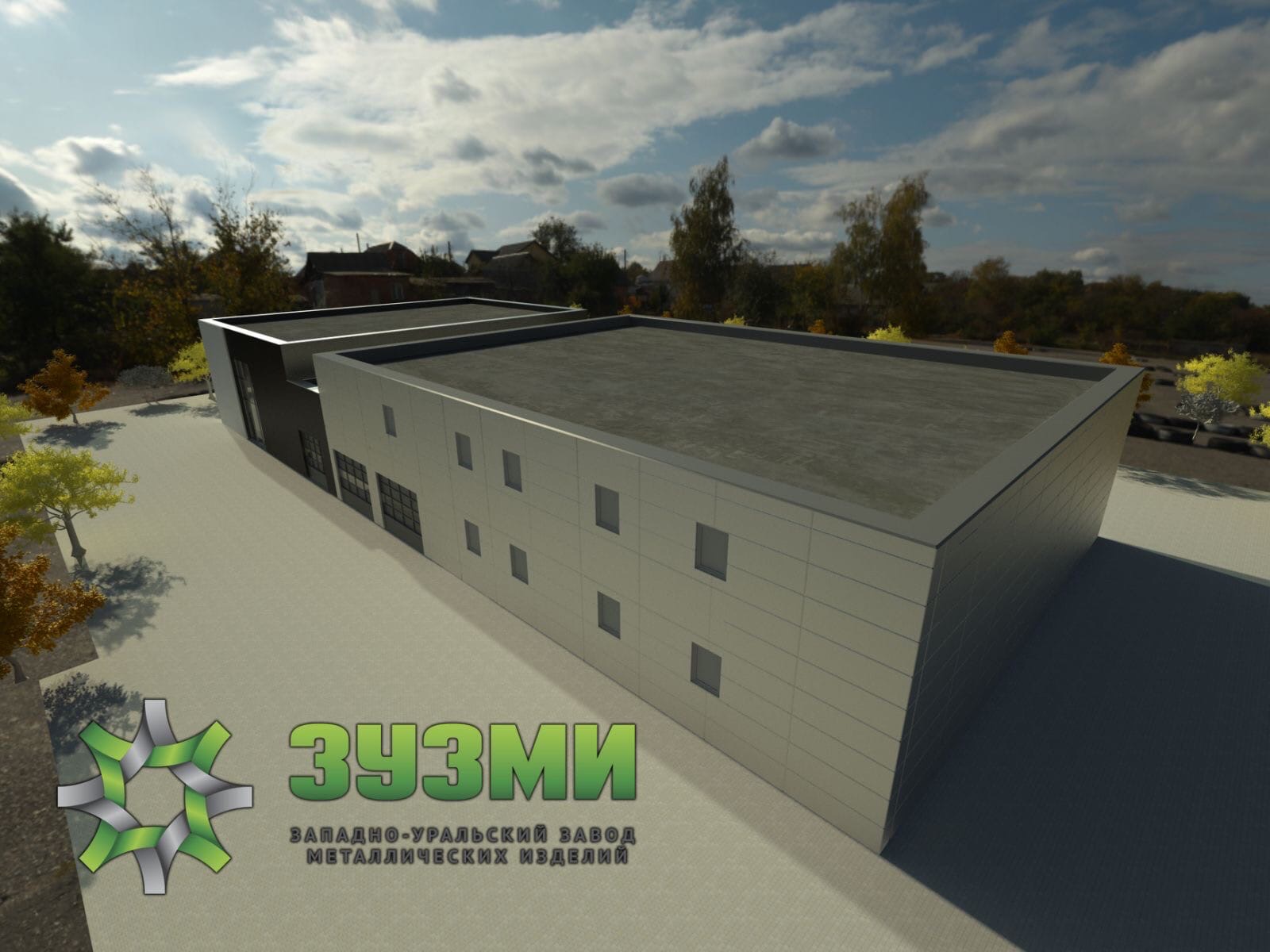 Визуализация современного завода по производству Металлоконструкций с административно-бытовым комплексом и благоустройством прилегающей территории.